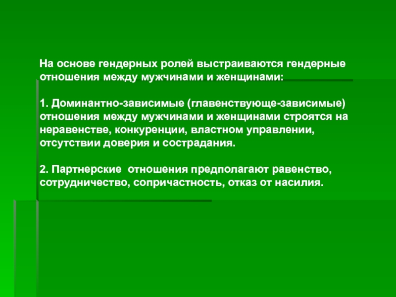 1. Доминантно-зависимые (главенствующе-зависимые) отношения между мужчинами и женщинами строятся на