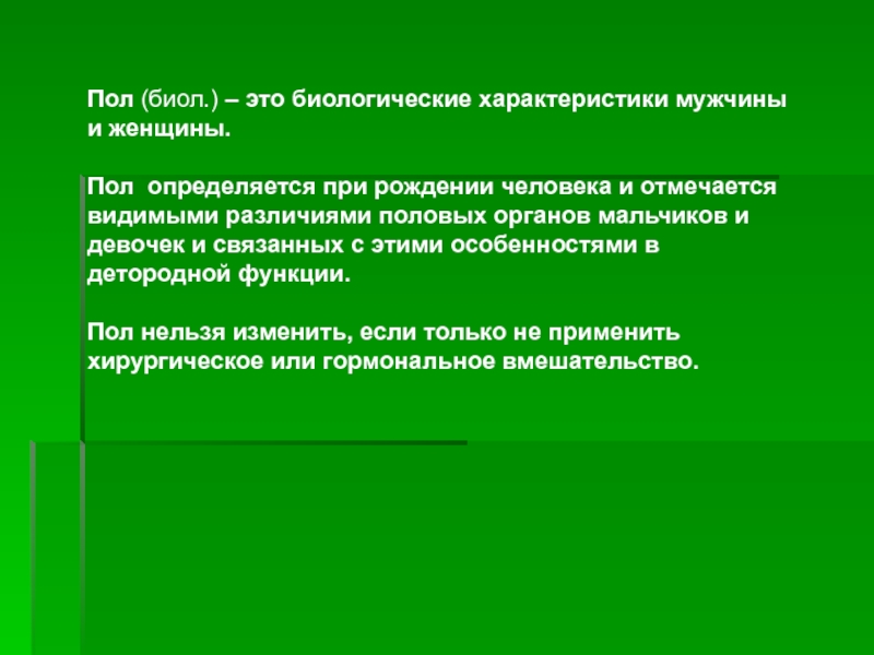 Пол (биол.) – это биологические характеристики мужчины и женщины.