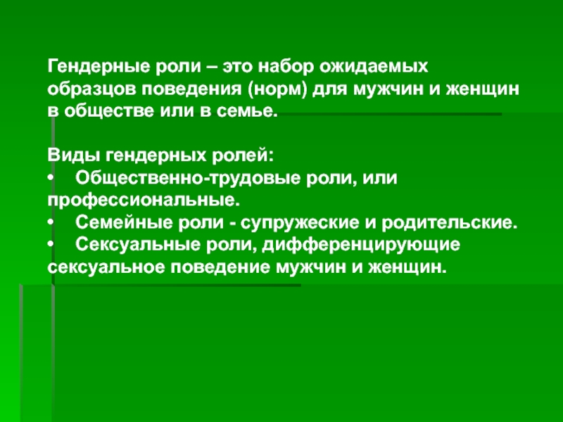 Виды гендерных ролей: