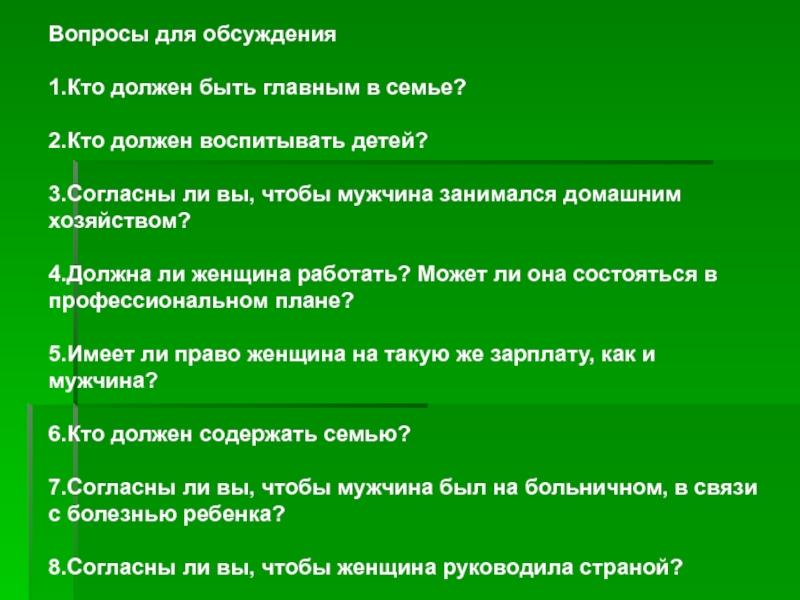 1.Кто должен быть главным в семье?