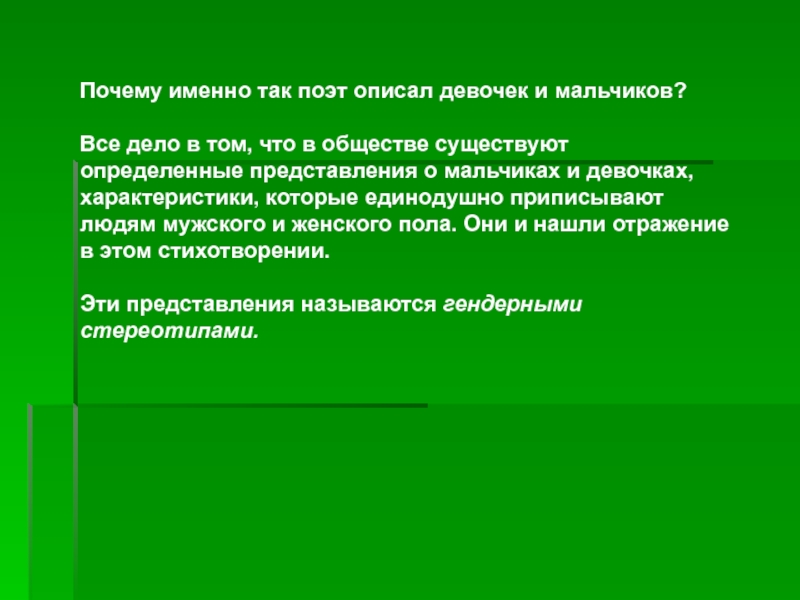 Почему именно так поэт описал девочек и мальчиков?