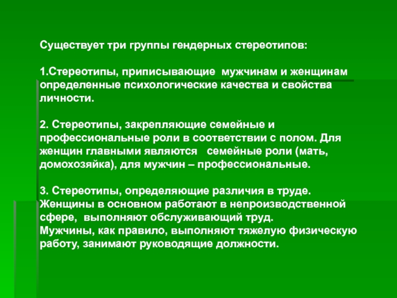 Существует три группы гендерных стереотипов: