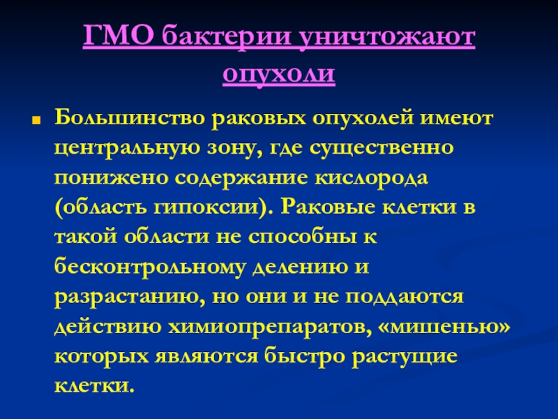 существенно понижено содержание кислорода (область гипоксии). Раковые клетки в такой
