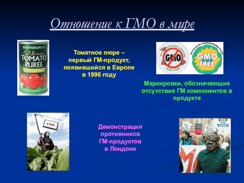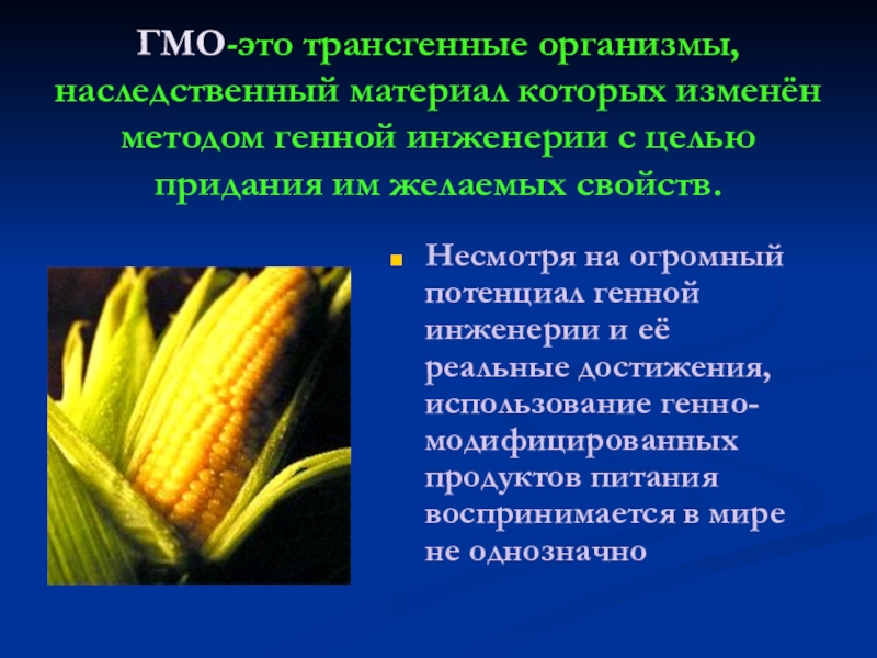 Слайд 1Генетически модифицированные организмы (ГМО)