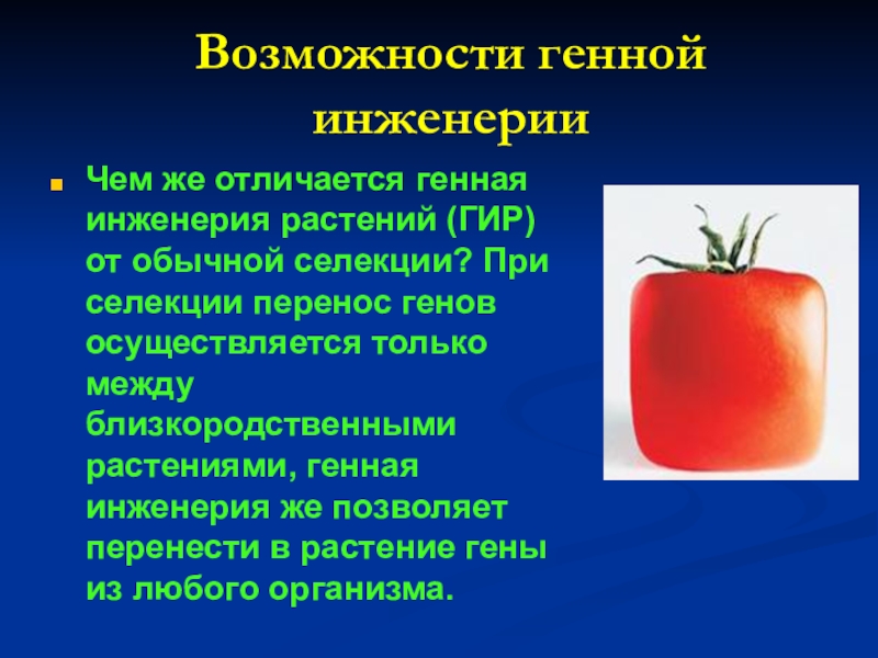 растениями, генная инженерия же позволяет перенести в растение гены из любого организма.