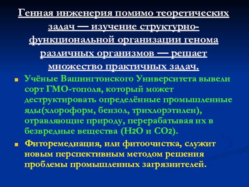 Генная инженерия помимо теоретических задач — изучение структурно-функциональной организации генома