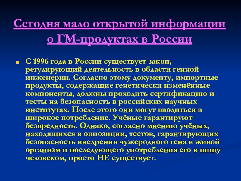Сегодня мало открытой информации о ГМ-продуктах в России