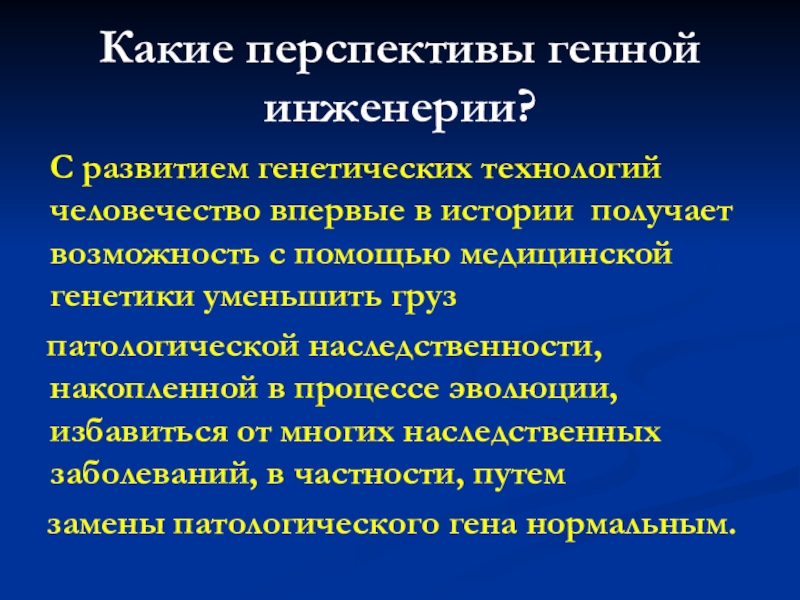 патологической наследственности, накопленной в процессе эволюции, избавиться от многих наследственных заболеваний, в частности, путем