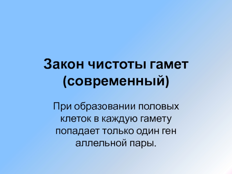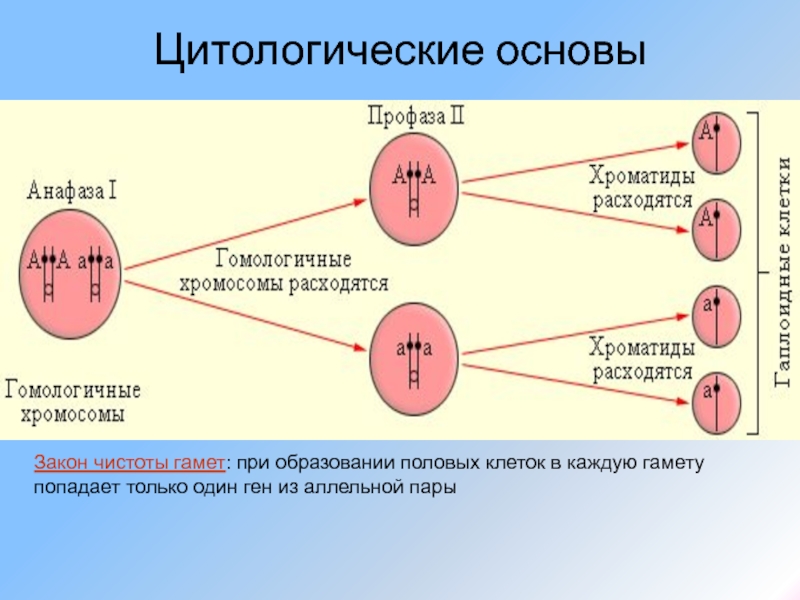 Закон чистоты гамет: при образовании половых клеток в каждую