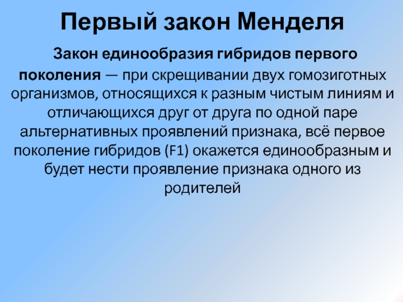Слайд 6Первый закон Менделя –