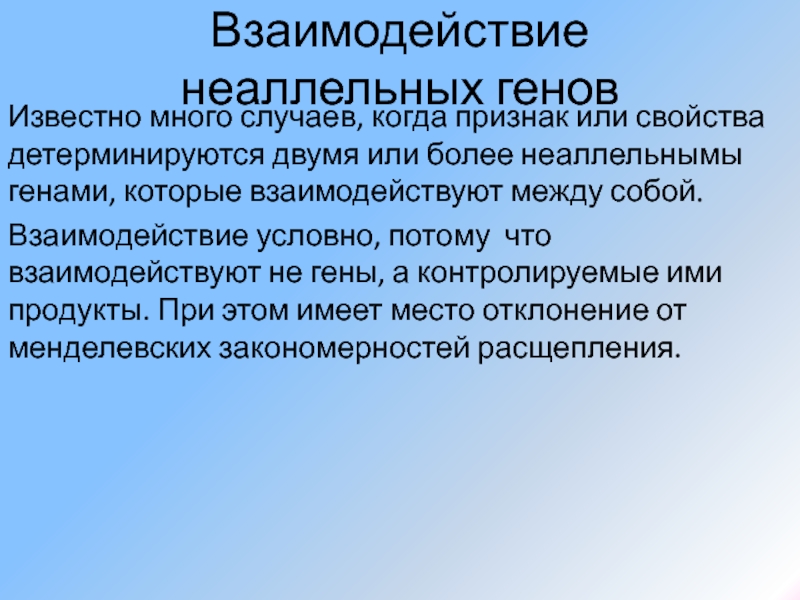 Слайд 25Взаимодействие неаллельных генов