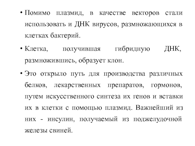 Слайд 27Помимо плазмид, в качестве векторов стали использовать и ДНК вирусов,