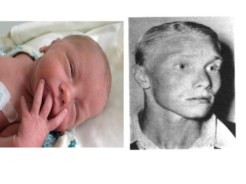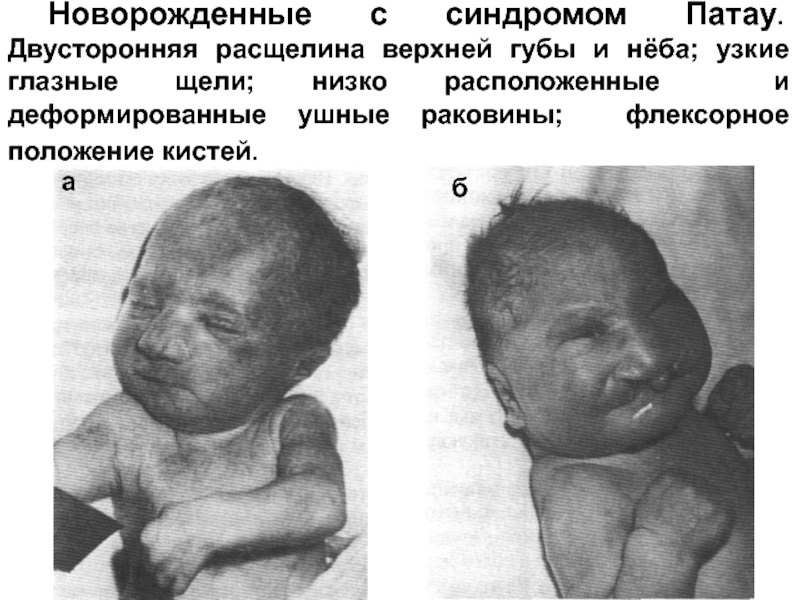 Слайд 73 Новорожденные с синдромом Патау. Двусторонняя расщелина верхней губы