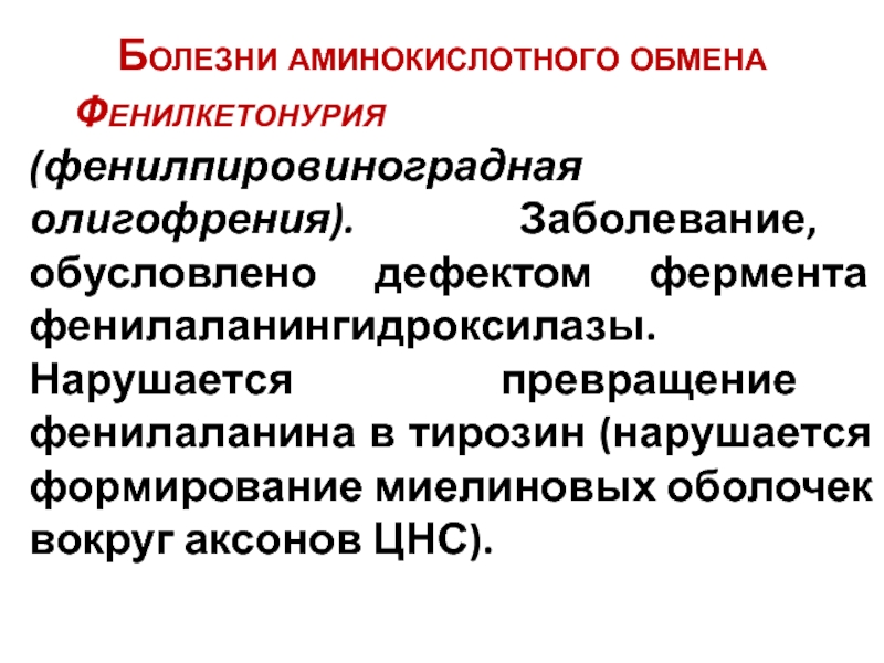 (фенилпировиноградная олигофрения). Заболевание, обусловлено дефектом фермента фенилаланингидроксилазы.