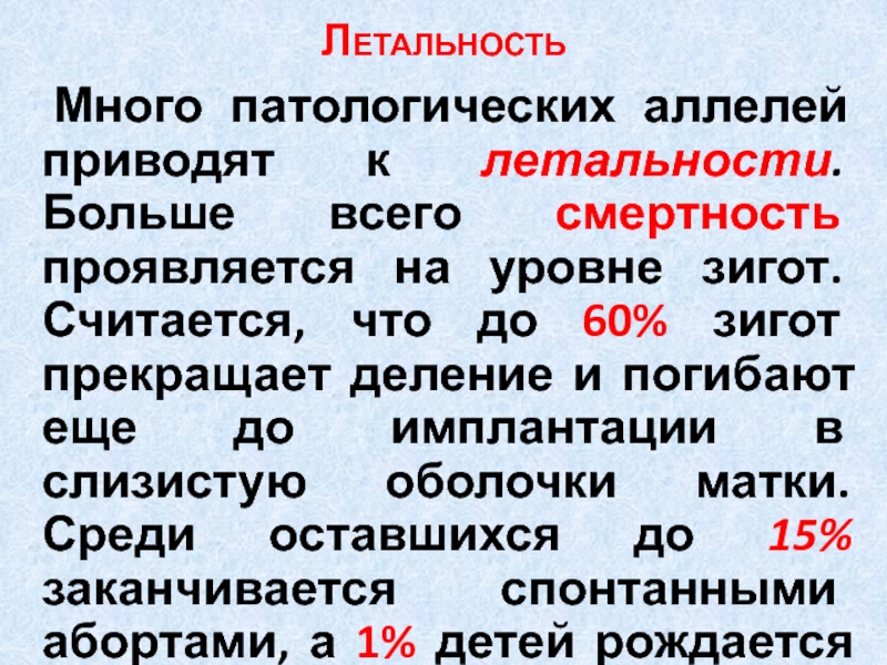 Много патологических аллелей приводят к летальности. Больше всего смертность проявляется