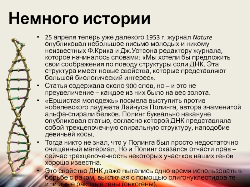 25 апреля теперь уже далекого 1953 г. журнал Nature опубликовал