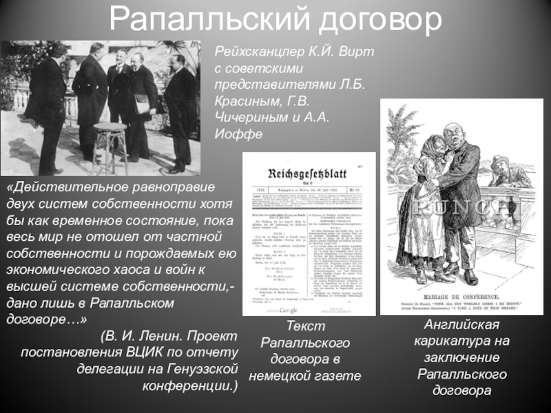 как временное состояние, пока весь мир не отошел от частной собственности и порождаемых ею экономического хаоса и войн к высшей системе собственности,- дано лишь в Рапалльском договоре…»