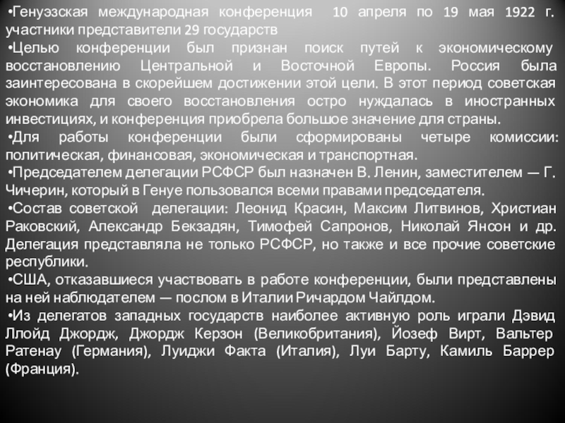 Слайд 2Генуэзская международная конференция 10 апреля по 19 мая 1922 г.