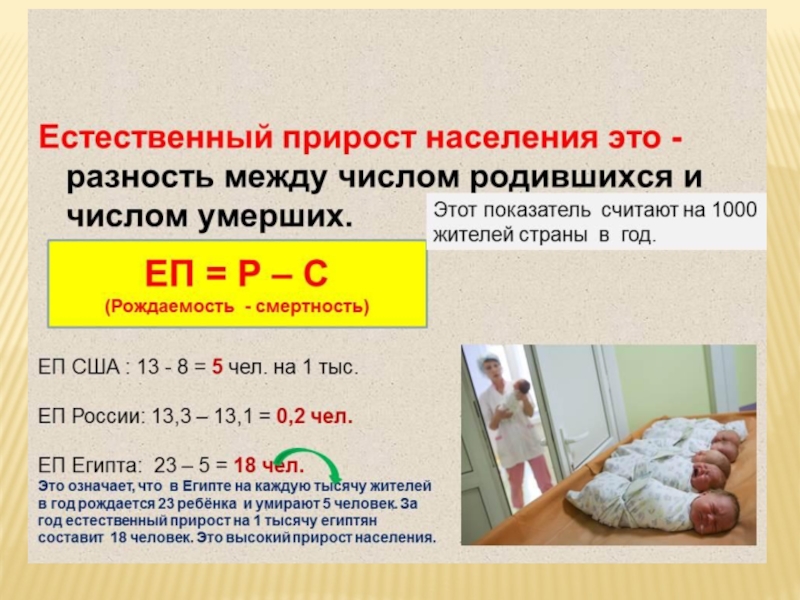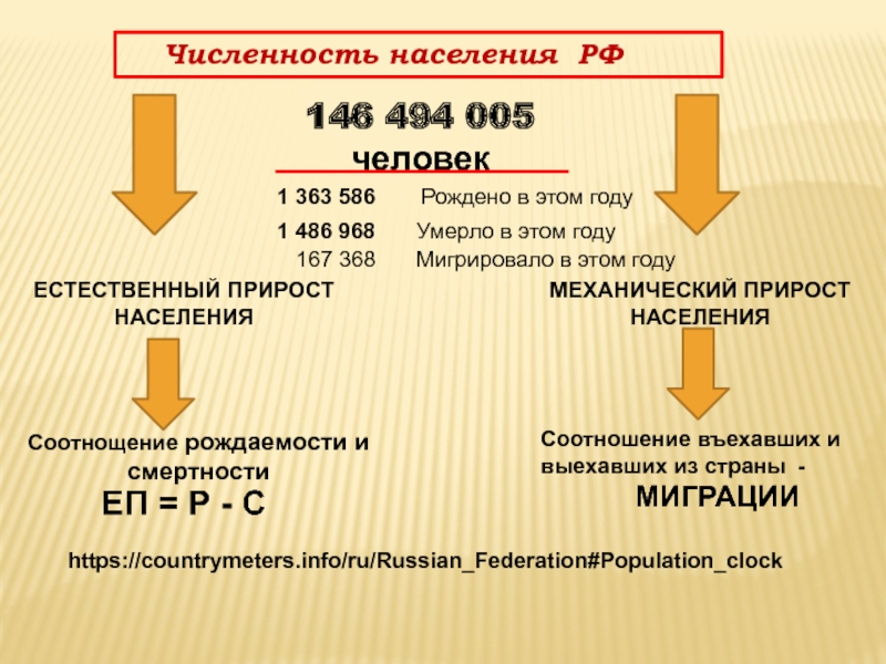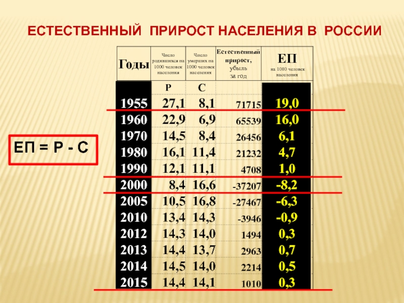 ЕП = Р - СЕСТЕСТВЕННЫЙ ПРИРОСТ НАСЕЛЕНИЯ В РОССИИ
