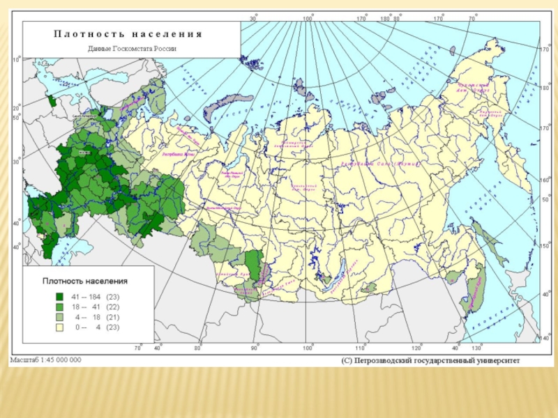 Слайд 26Плотность населения России.