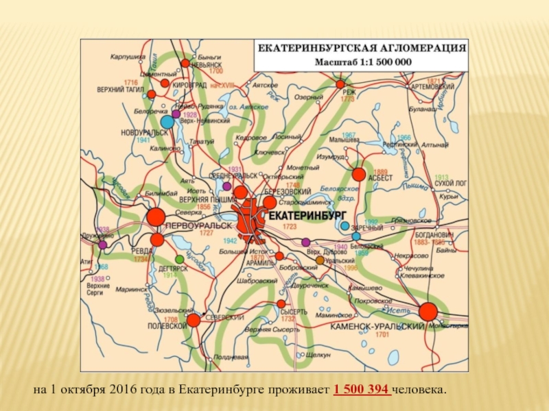 Слайд 33на 1 октября 2016 года в Екатеринбурге проживает 1 500
