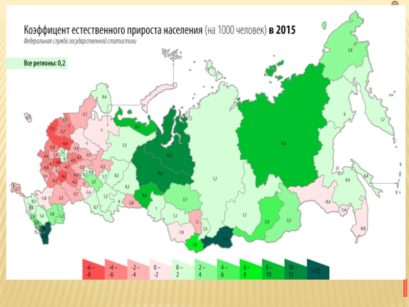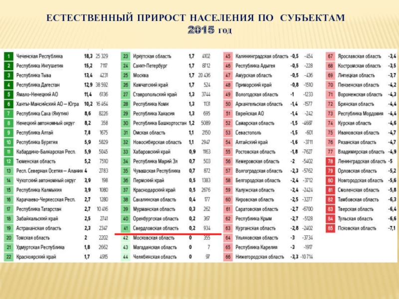 Слайд 9ЕСТЕСТВЕННЫЙ ПРИРОСТ НАСЕЛЕНИЯ ПО СУБЪЕКТАМ
