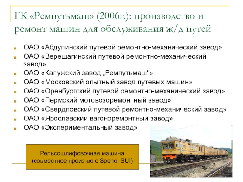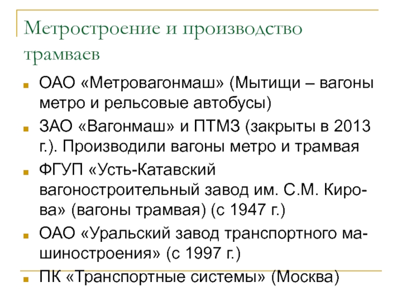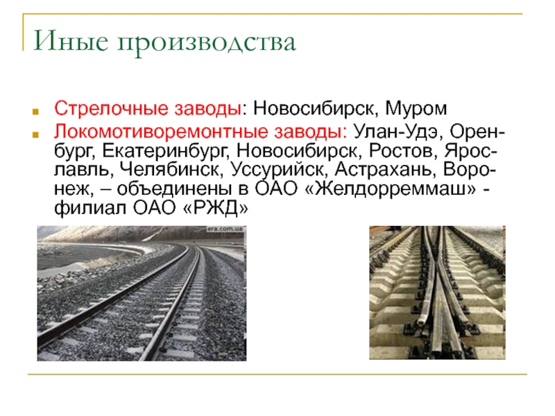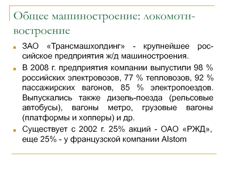 выпуск которых в России не осуществлялся или происходил в ограниченных объемах, так как после распада СССР в силу высокой монополизации экономики страны производство ряда товаров отрасли осталось в бывших республиках (железнодорожное машиностроение, судостроение, производство нефтегазопромыслового оборудования и др.);