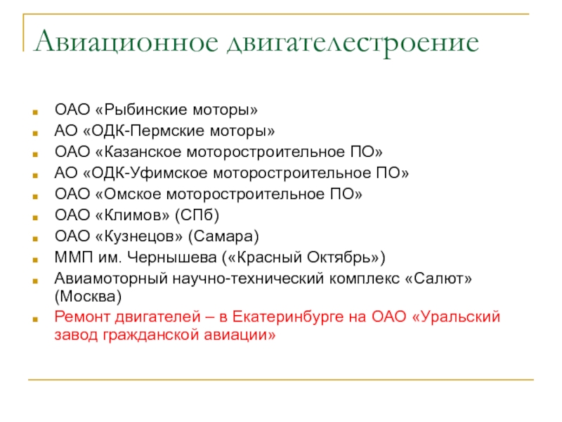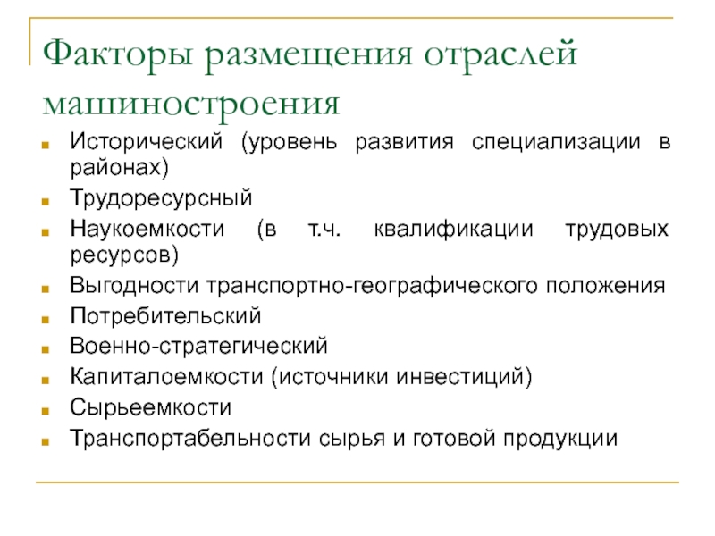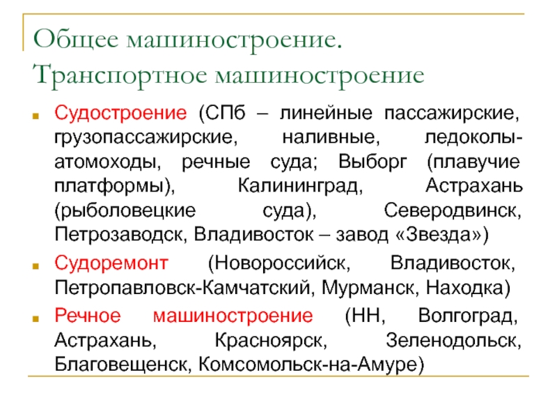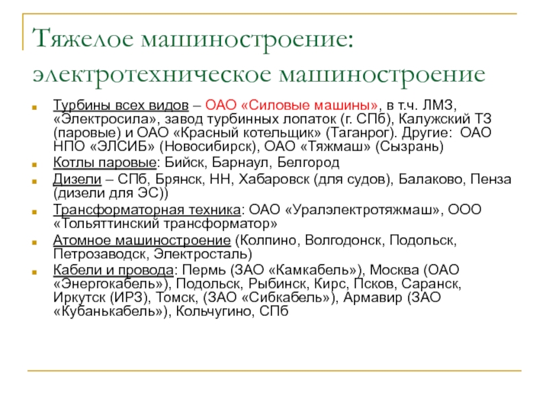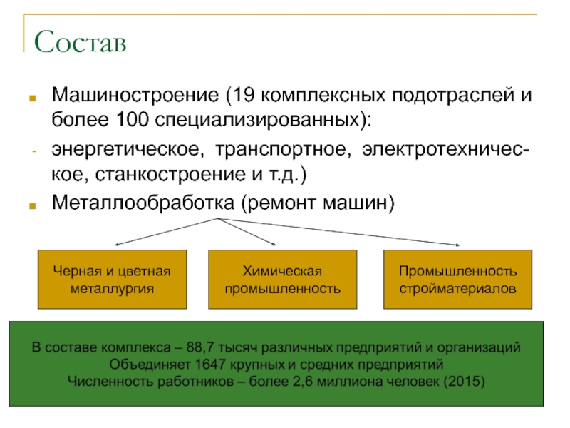 Машиностроение (19 комплексных подотраслей и более 100 специализированных):
