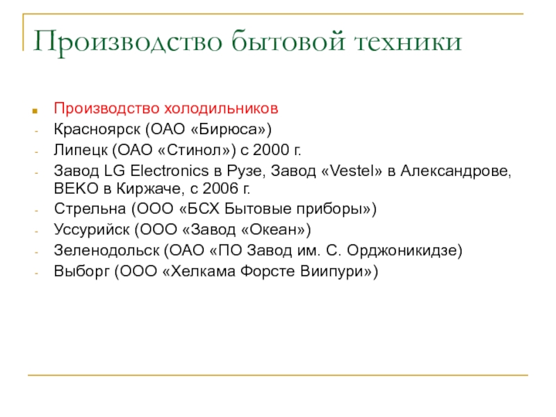 Завод LG Electronics в Рузе, Завод «Vestel» в Александрове, BEKO