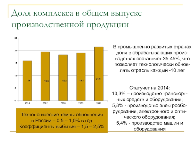 Слайд 5Доля комплекса в общем выпуске производственной продукции