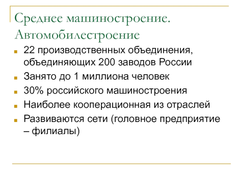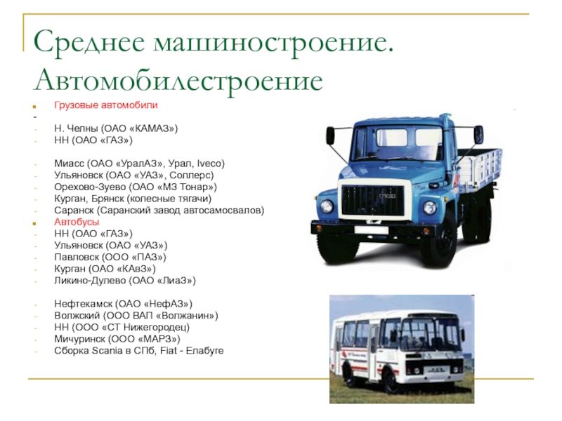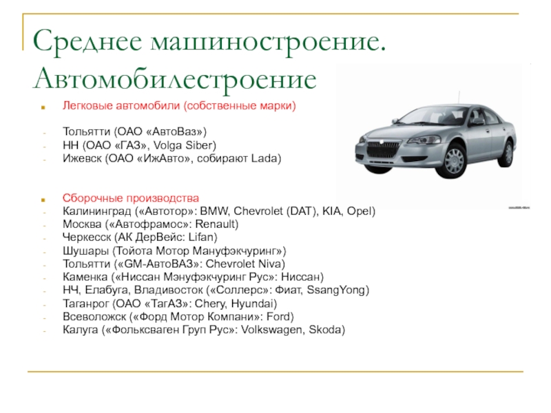 Слайд 49Среднее машиностроение. Автомобилестроение
