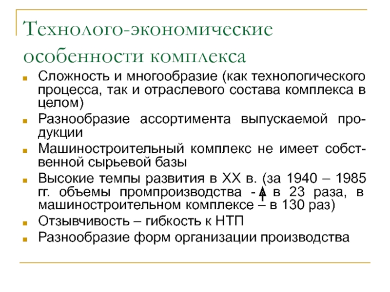Высокие темпы развития в XX в. (за 1940 – 1985 гг. объемы промпроизводства - в 23 раза, в машиностроительном комплексе – в 130 раз)