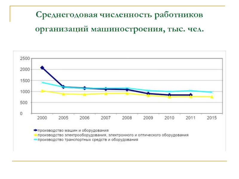 Слайд 6Среднегодовая численность работников организаций машиностроения, тыс. чел.