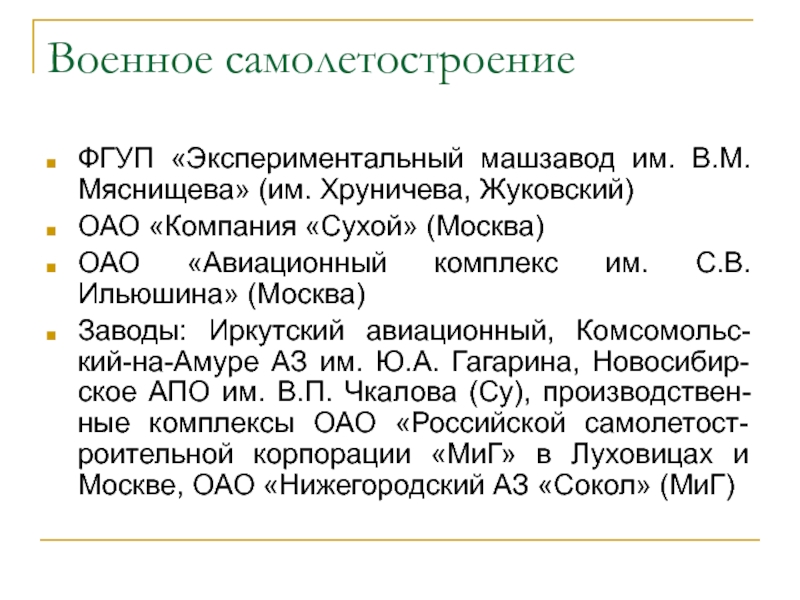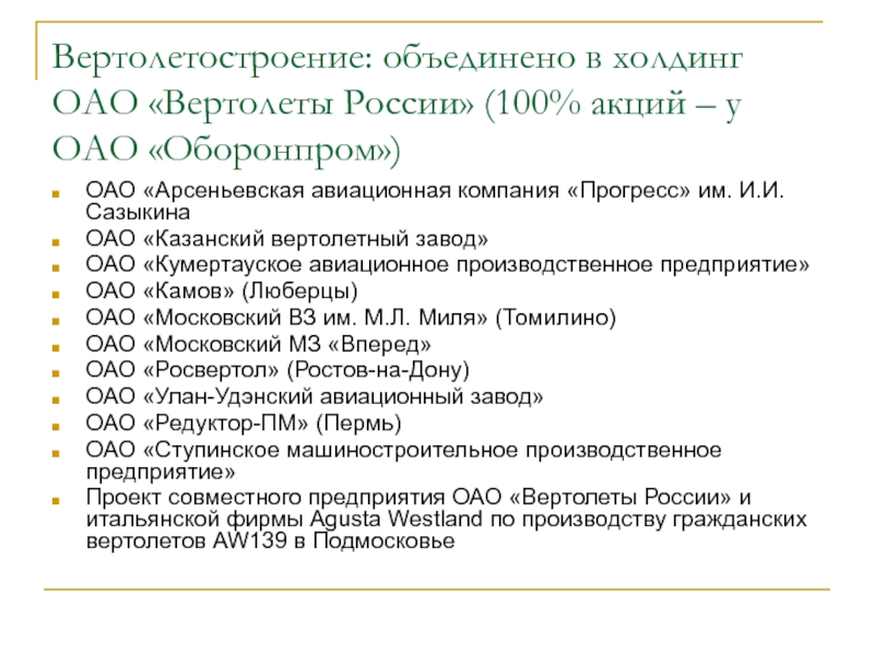 Расширение производства конкурентоспособной на внутреннем и внешнем рынках продукции. Эта задача реализуется двумя основными путями: во-первых, созданием совместных с иностранными компаниями производств и налаживанием выпуска на них зарубежных образцов продукции; во-вторых, оснащение отечественных образцов техники и оборудования отдельными деталями импортного производства (например, установка зарубежных двигателей на отечественных самолетах);