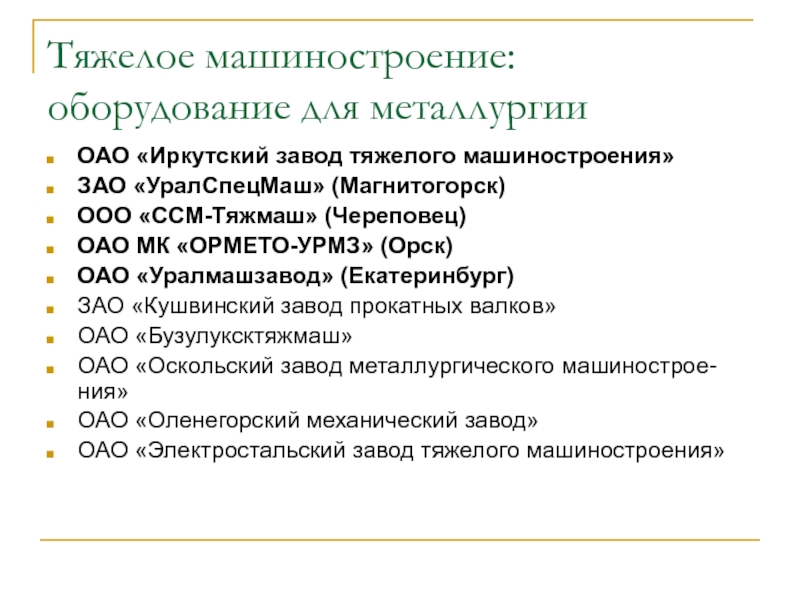 Слайд 11Тяжелое машиностроение: оборудование для металлургии