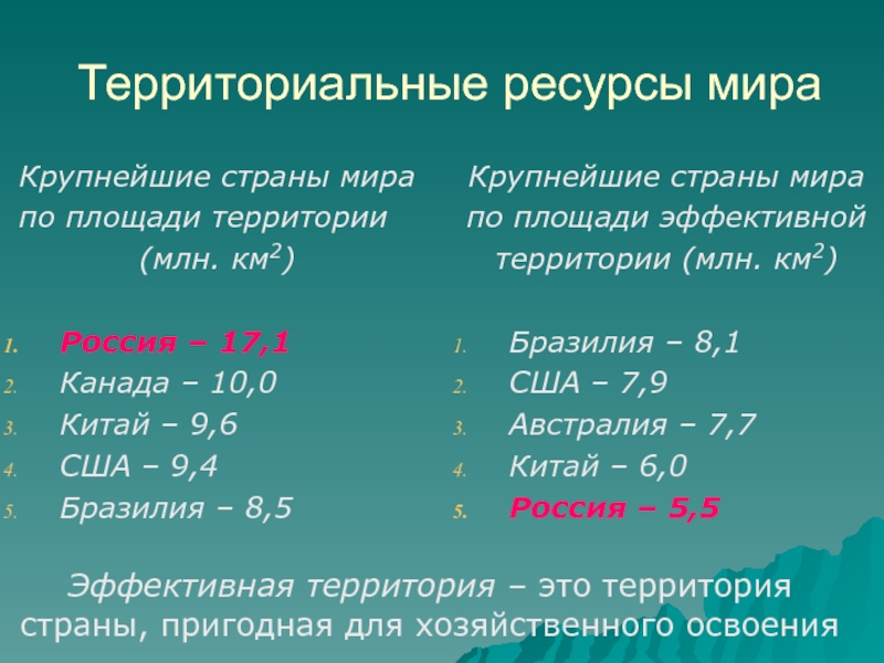 Эффективная территория – это территория страны, пригодная для хозяйственного освоения