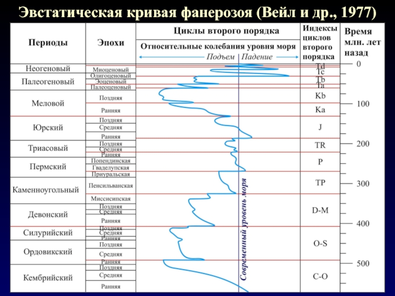 Слайд 46Эвстатическая кривая фанерозоя (Вейл и др., 1977)