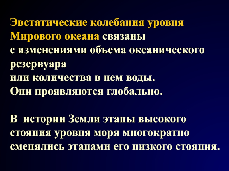 Слайд 43Эвстатические колебания уровня Мирового океана связаны