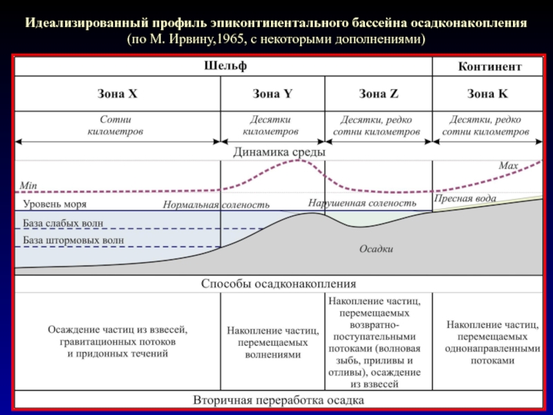 Слайд 41Идеализированный профиль эпиконтинентального бассейна осадконакопления