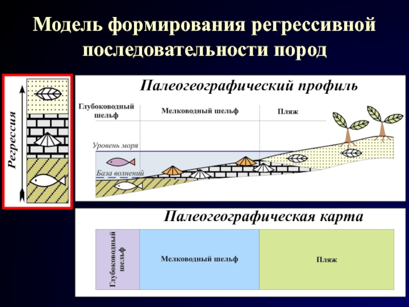 Слайд 36Модель формирования трансгрессивной последовательности пород