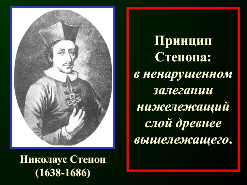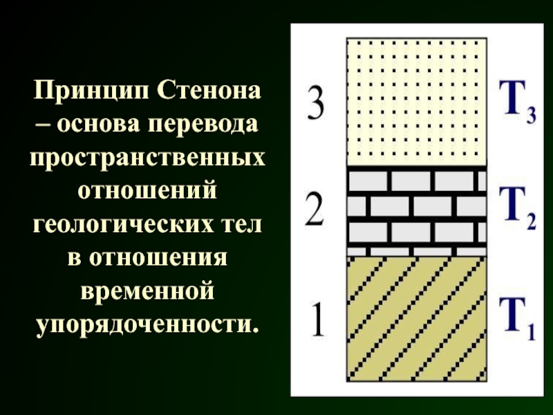 Слайд 17Принцип Стенона – основа перевода пространственных отношений геологических тел в