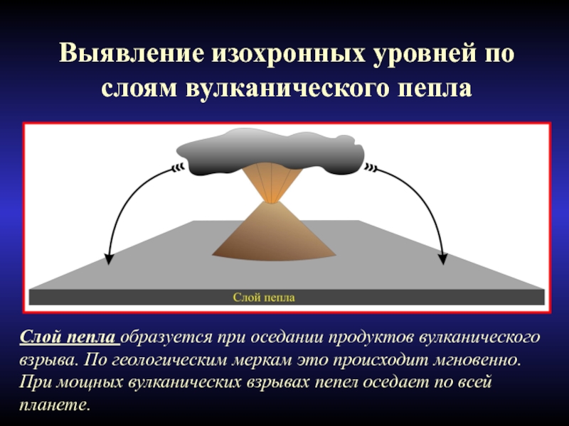 Слайд 29Выявление изохронных уровней по слоям вулканического пепла