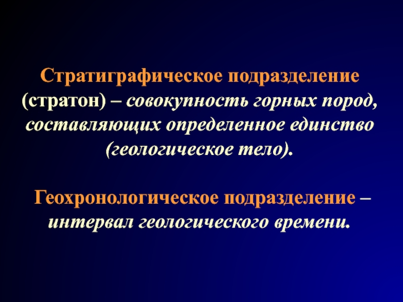 Слайд 8Стратиграфическое подразделение (стратон) – совокупность горных пород, составляющих определенное единство