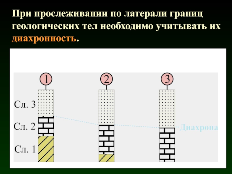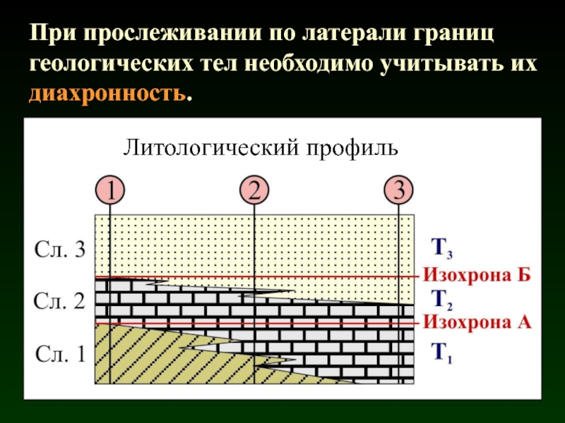 Слайд 22При прослеживании по латерали границ геологических тел необходимо учитывать их