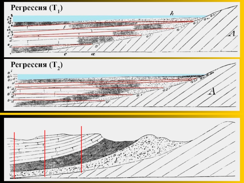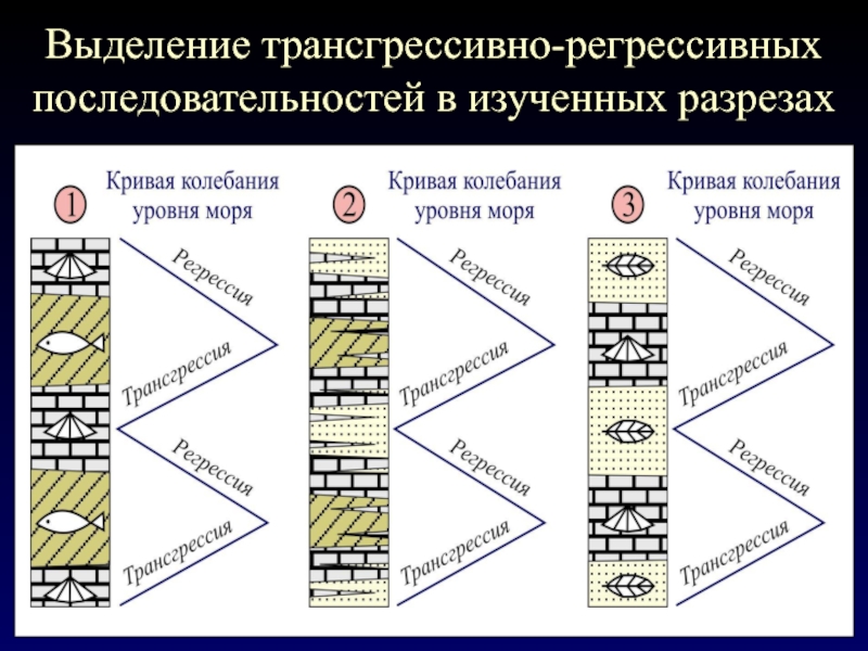 Слайд 38Выделение трансгрессивно-регрессивных последовательностей в изученных разрезах