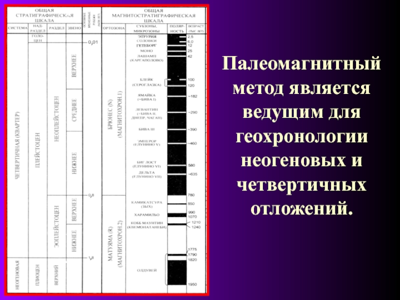 Слайд 59Палеомагнитный метод является ведущим для геохронологии неогеновых и четвертичных отложений.