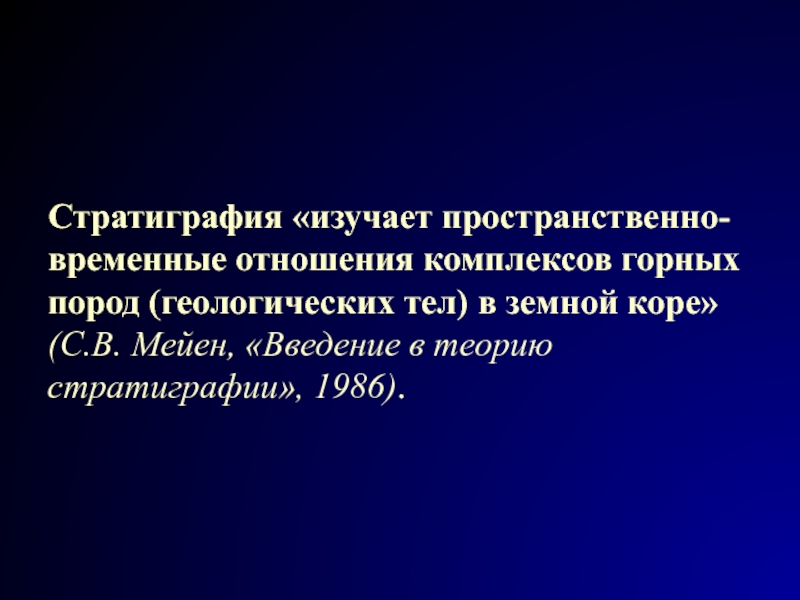 Слайд 3Стратиграфия «изучает пространственно-временные отношения комплексов горных пород (геологических тел) в