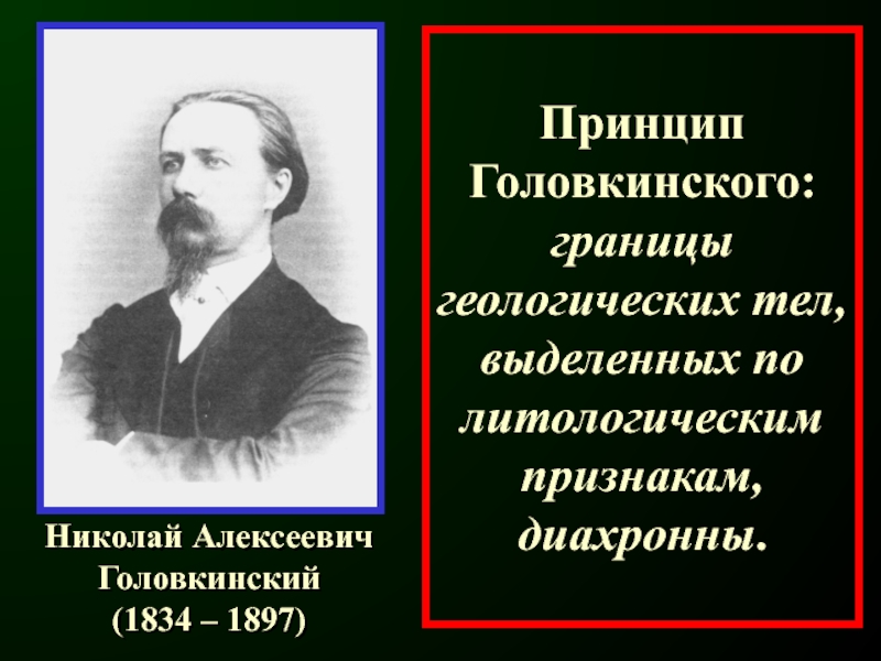 Слайд 18Принцип Головкинского: границы геологических тел, выделенных по литологическим признакам, диахронны.