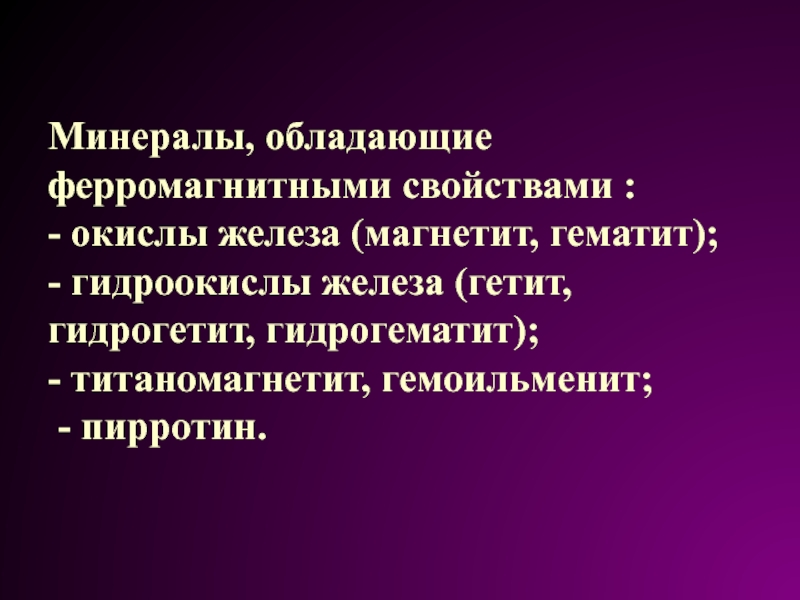 Слайд 55Минералы, обладающие ферромагнитными свойствами :