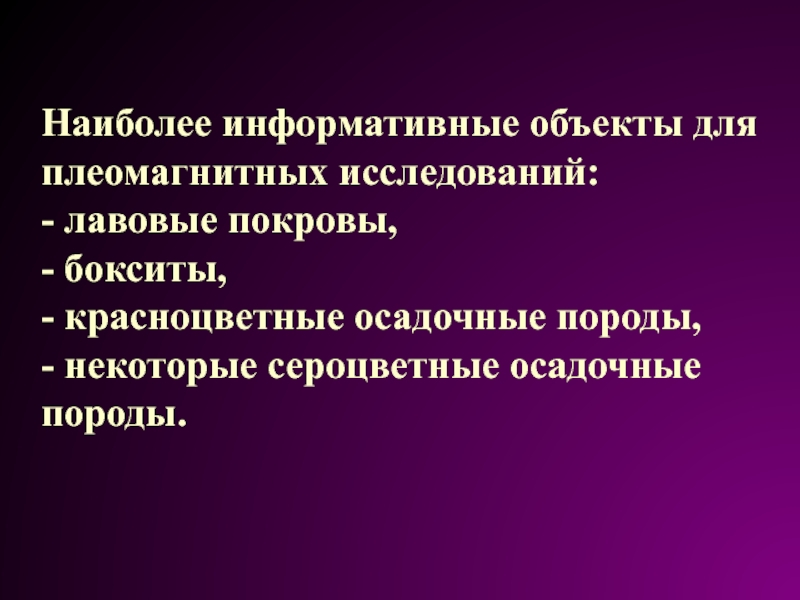 Слайд 56Наиболее информативные объекты для плеомагнитных исследований: